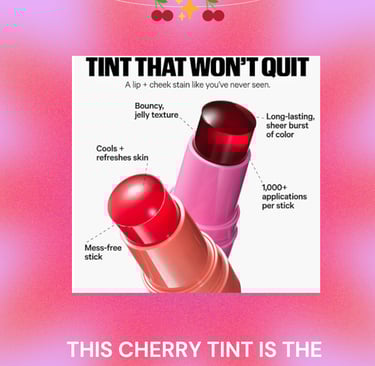 As an Amazon Associate I earn from qualifying purchases-CHERRY Tint—the ultimate cherry-inspired lip and cheek stain for that juicy, glass-skin glow. This buildable, sheer jelly tint is packed with vegan collagen, seawater, and aloe to hydrate and refresh, while delivering a cooling burst of color. Affiliate Disclosure: This post may contain affiliate links, which means I may earn a small commission if you purchase through them—at no extra cost to you. Thank you for supporting my content!