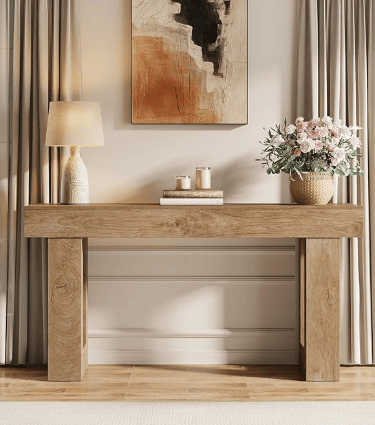 Wooden Rectangular Sofa Table Behind The Couch, Farmhouse Entryway