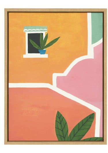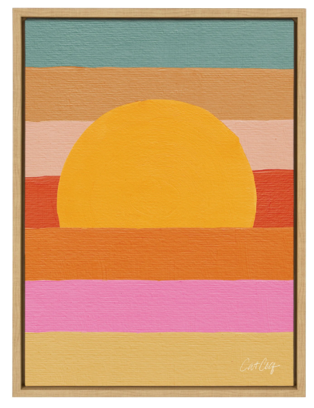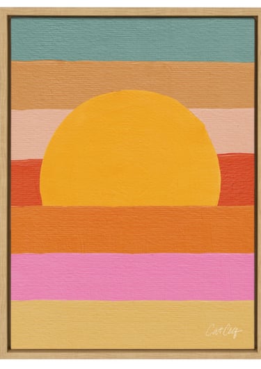 Wall art featuring desert landscapes, abstract sun motifs, or soft geometric forms in sunset colors tie the theme together. Pottery, ceramic vases, and handmade sculptures add artisanal charm.